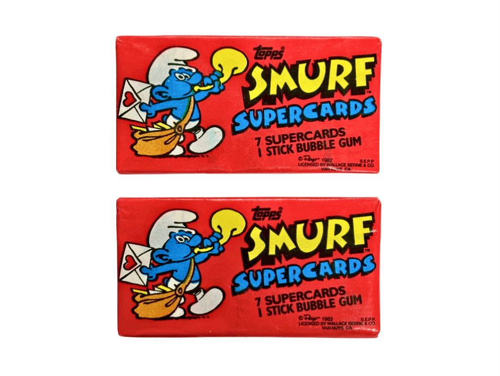 1982 TOPPS SMURF SUPERCARDS (X2 UNOPENED PACKS) – VINTAGE WAXSet Of Two Unopened 1982 Topps Smurf Supercards Wax Packs. Each Contains 7 Cards And 1 Stick Of Bubble Gum. Great Sealed Collectibles From The Early ‘80S Smurfmania Era.- 2 X Sealed 1982 Topps Smurf Supercard Packs- 7 Cards + 1 Gum Stick Per Pack- Vintage Pop Culture Wax Packs- Classic Cartoon NostalgiaDisclaimer: Gum Not Suitable For Consumption.Size: Condition: Good - Refer To Images+62