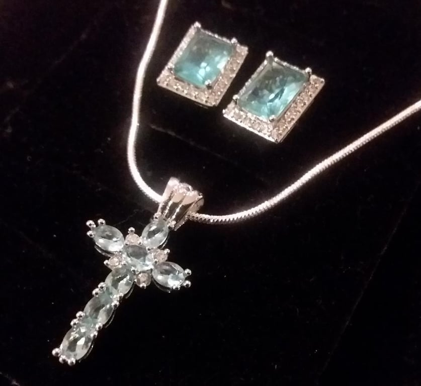 925 SILVER PENDANT NECKLACE WITH STUD EARRINGS AND LONDON BLUE CRYSTALS Condition: Good refer to images 0162884+38