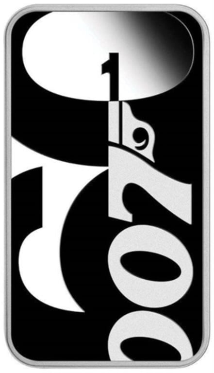 WE ARE EXCITED TO PRESENT THIS OFFICIALLY LICENSED JAMES BOND 1OZ SILVER RECTANGULAR COIN WHICH CELEBRATES THE 60 YEARS OF BOND MOVIES. JAMES BOND IS A FICTIONAL BRITISH SECRET SERVICE AGENT CREATED BY FORMER INTELLIGENCE OFFICER AND AUTHOR IAN FLEMING IN 1953. HIS FAMOUS CHARACTER FEATURED IN 12 NOVELS AND TWO SHORT STORY COLLECTIONS BEFORE PRODUCERS ALBERT R. ‘CUBBY’ BROCCOLI AND HARRY SALTZMAN BROUGHT BOND TO CINEMA SCREENS FOR THE FIRST TIME IN 1962. DURING EON PRODUCTIONS’ 25 BOND BLOCKBUSTERS TO DATE, THE SPY HAS BEEN MEMORABLY PORTRAYED BY SIX ACTORS - SEAN CONNERY, GEORGE LAZENBY, ROGER MOORE, TIMOTHY DALTON, PIERCE BROSNAN AND DANIEL CRAIG, WHO EACH BROUGHT THEIR OWN UNIQUE FLAIR TO THE ROLE. NOW, 60 YEARS AFTER THE PREMIERE OF DR. NO, JAMES BOND CONTINUES TO ENTERTAIN AND EXCITE AUDIENCES AROUND THE WORLD IN ONE OF FILM’S LONGEST RUNNING AND MOST SUCCESSFUL FRANCHISES.