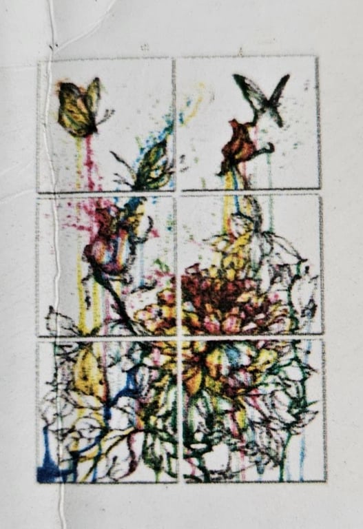 Frameless picture - this picture has 6 separate pieces that are 50cm x 50cm x 2.5cm, made of hard plastic - full picture size is 1.5m high x 1m wide