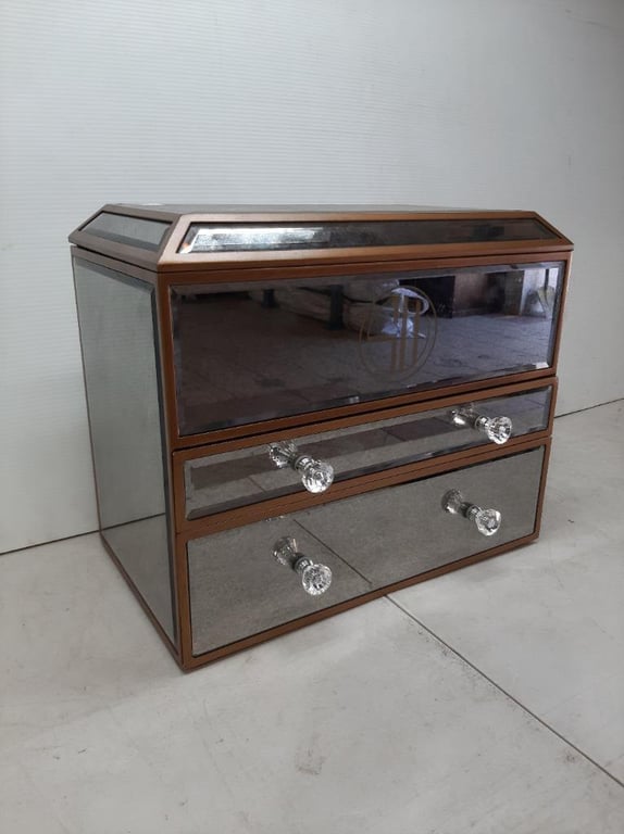 Mirrored Jewellery Box with Two Draws & Open lid for Compartments