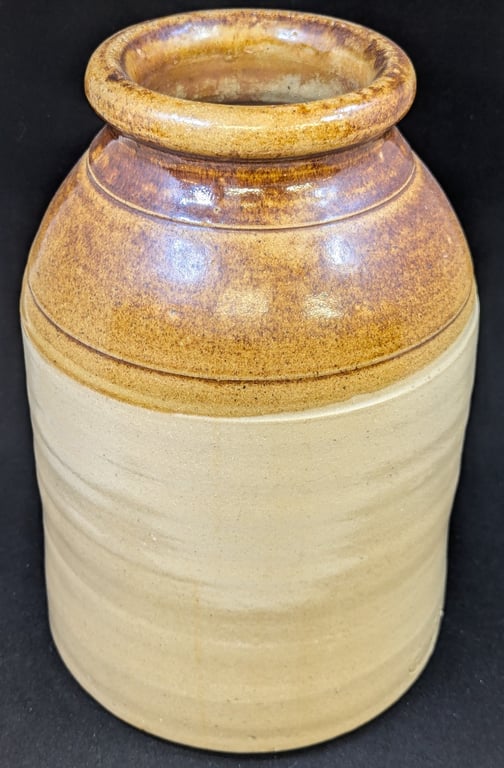 POTTERY JAR Item Size: Height: 36cm, Width: 25cm, Depth: 25cm Coffee Colour And Beige Exterior Condition: Good - Refer To Images 584943+2