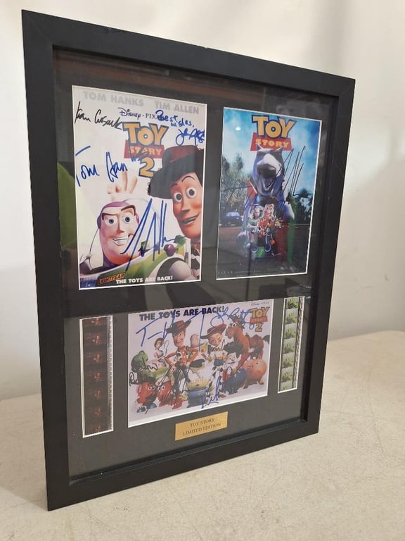 COLLECTABLES: 1 x TOY STORY Limited Edition Signed Wall hanging with black wooden frame, measures H:43.5 x W:33 x D:3.5cm, 1 x DISNEYS-TOY STORY "Original Filmcell Limited Edition # 120:200 wall hanging in black wooden frame , comes with certificate of authenticity, measures H:23.5 x W:28.5 x D:4cm