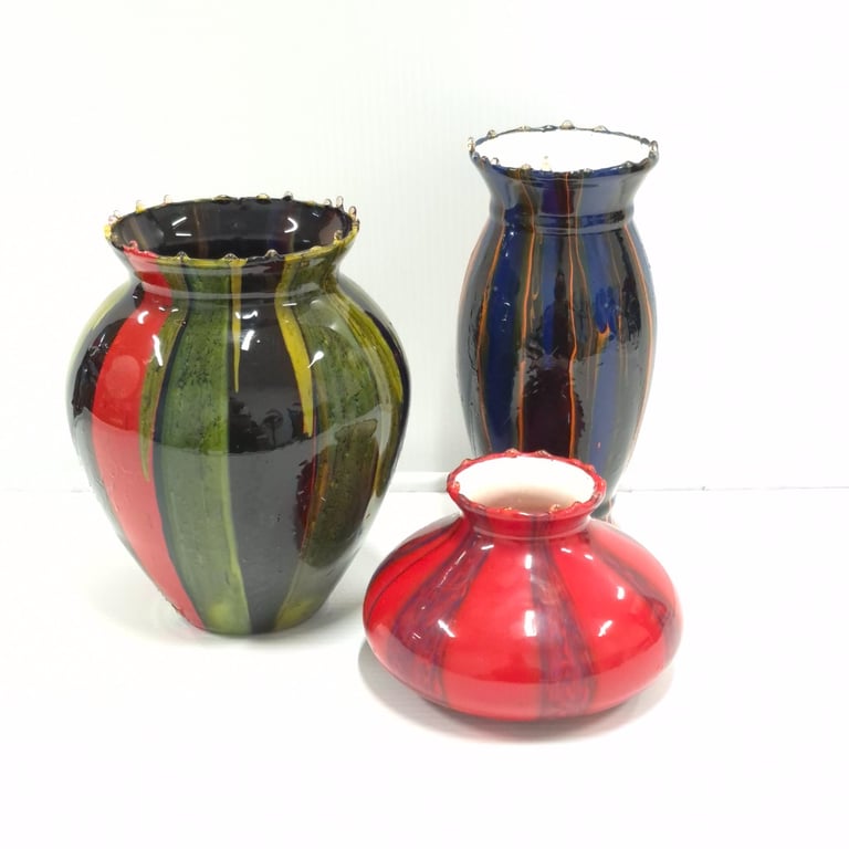 COLLECTION VINTAGE MULTI COLOURED DRIP GLAZE VASESCondition: Good - Refer To ImagesLOCATED RACK 6B587690+1