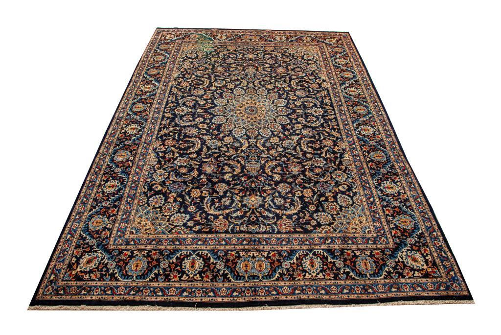 100% Lambs Wool Polished Pile, Very Solid And Densely Hand Knotted. In A Traditional Design Of A Central Medallion Shah Abbasi Palmettes In Tones Of Navy. Origin: Persia. Size(Cm): 340X245 Rrp: $6200 Circa 1980S