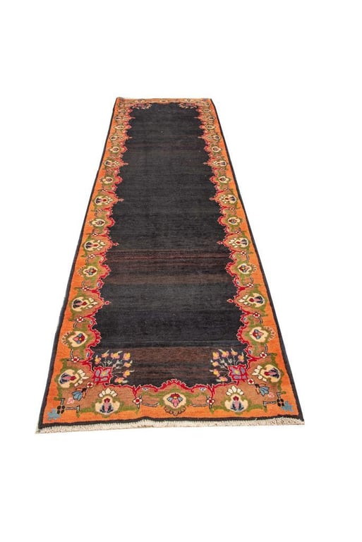 PERSIAN HAMADA RUNNER 100% Wool Pile Navy Plain With Flora Orang And Green Border. Sizecm): 370X105 Circa 1980S. Rrp:$4800Condition: Good - Refer To Images488197+10