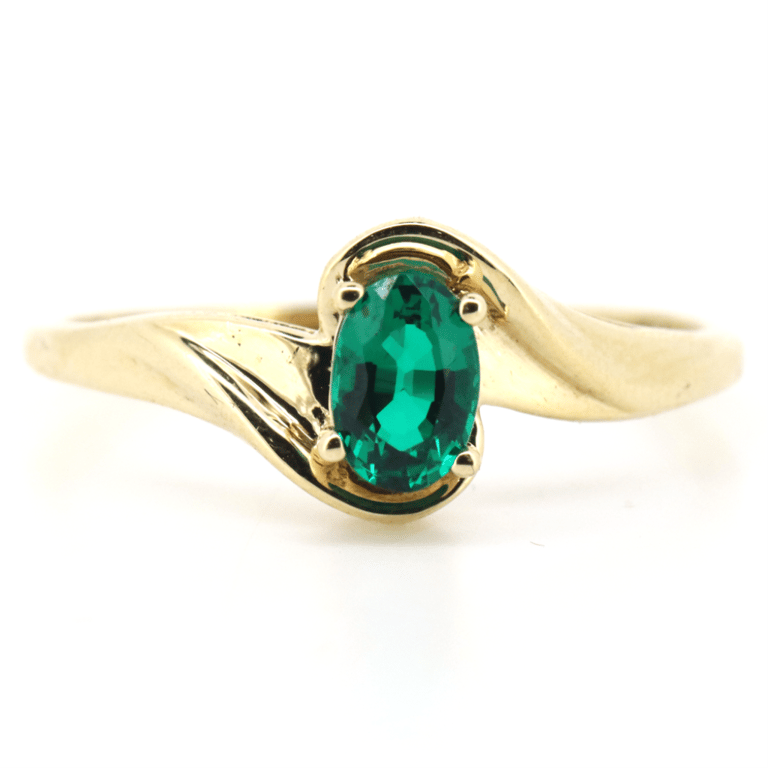 9K Yellow Gold And Emerald, Dress Ring. Ring Size P. Condition: Pre-Owned.