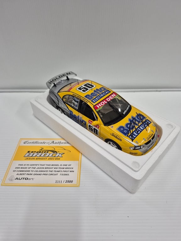 AUTOART MODEL CAR LIMITED EDITION 2003 HOLDEN VX COMMODORE #50DRIVIN BT JASON BRIGHT & PETER BROCKINCLUDES 'AUTHENTICITY CERTIFICATE'BOXEDCondition: Good - Refer To Images586129+28