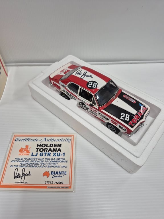 BIANTE COLLECTABLES MODEL CAR LIMITED EDITION HOLDEN TORANA LJ GTR XU I #28DRIVEN BY PETER BROCK1972 BATHURST 1000INCLUDES 'AUTHENTICITY CERTIFICATE'BOXEDCondition: Good - Refer To Images586129+29