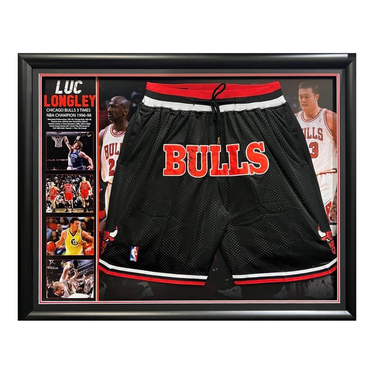 These Replica Full Size Chicago Bulls Shorts Were Signed By Luc On 12Th October 2022 In Sydney, Are Professionally Framed And Include Statistics And Images During His Remarkable Career With The Chicago Bulls.