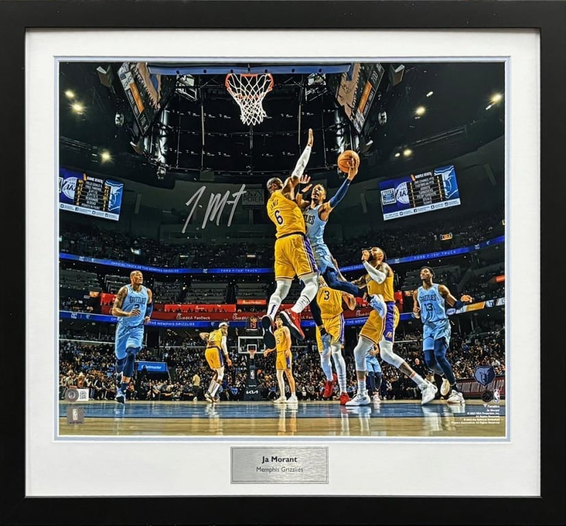 Beautifully Presented 16X20 Inch Photograph Hand Signed By Nba Superstar Ja Morant. Morant Is Featured Laying Up Against Lebron James, Has Hand Signed This Large Photo And Is Accompanied With Matching Beckett Hologram And Certificate. A Cracking Collectable.