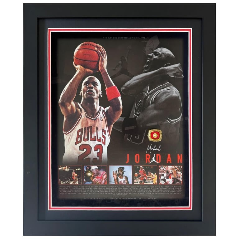 Celebrate The Legacy Of Michael Jordan, Widely Regarded As The Greatest Basketball Player Of All Time, With This Stunning Replica Mvp Ring Display. Beautifully Framed, This Collectible Showcases Iconic Imagery Of Jordan’S Career With The Chicago Bulls Alongside A Detailed Replica Mvp Ring. Designed To Honor His Incredible Achievements And Six-Time Nba Finals Dominance, This Piece Is A True Tribute To His Unmatched Impact On The Game. Perfect For Any Basketball Fan Or Collector, It Makes An Eye-Catching Centerpiece For Your Home, Office, Or Memorabilia Collection.