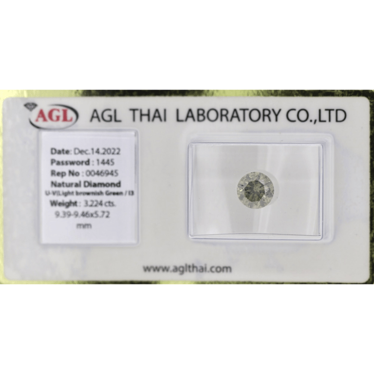 Round Brilliant Cut, U-V (Light Brownish-Green) Colour, I3 Clarity, Loose, Unset. Stone Comes Sealed With Agl Report: 0046945.