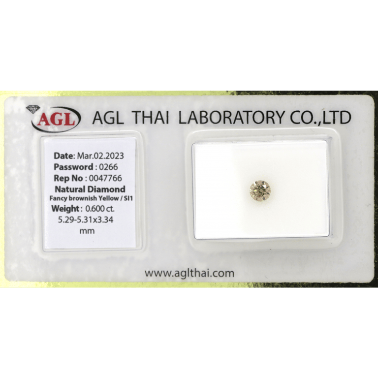 Round Brilliant Cut, Fancy Brownish-Yellow, Si1 Clarity, Loose, Unset. Stone Comes Sealed With Agl Report: 0047766.