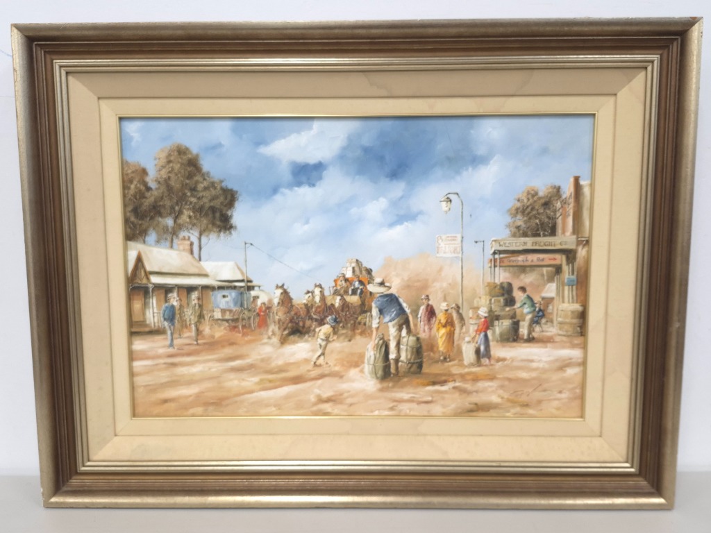 JOHN GUY (1944 - 2000) Original Oil Painting On Canvas Title: Western Mailer Image Size: 49cm x 74cm Frame Size: 74cm x 100cm Item Size: Height: 74cm, Width: 100cm, Depth: 8.5cm Signature Details: Signed Lower Right Condition: Good - Refer To Images 586105+1
