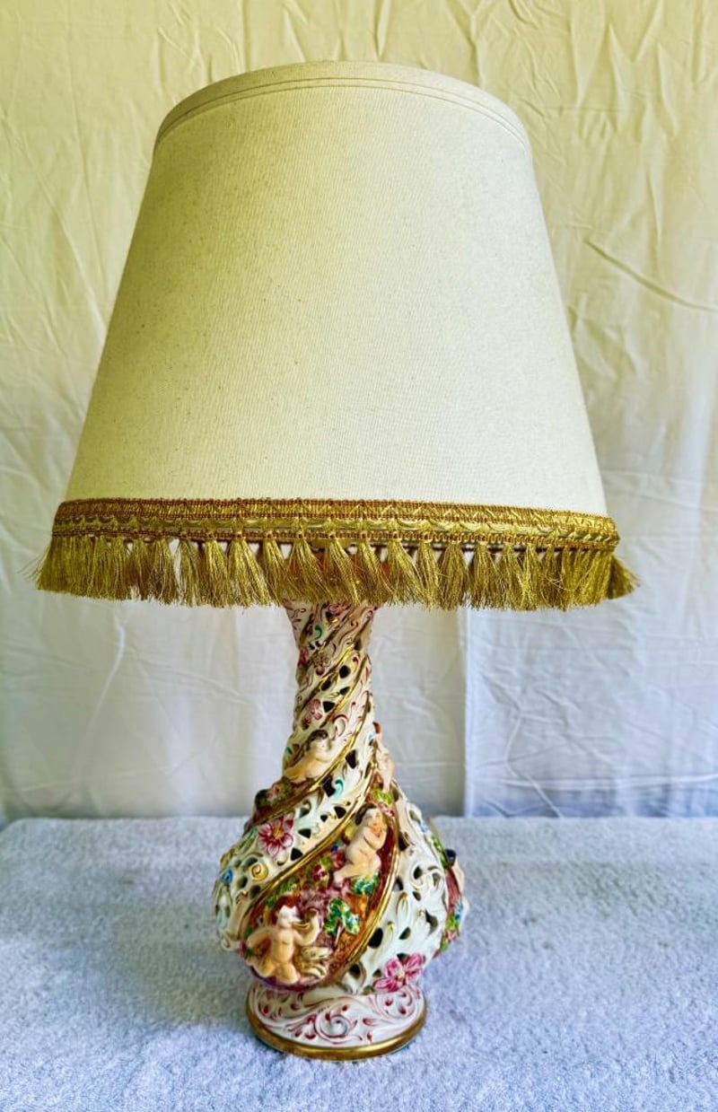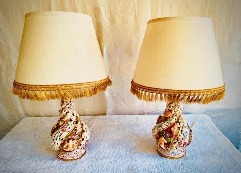 PAIR OF CAPODIMONTE LAMPSDimensions - Height 55Cm Width Including Shades: 36 CmCondition: Good - Refer To Images586267+23