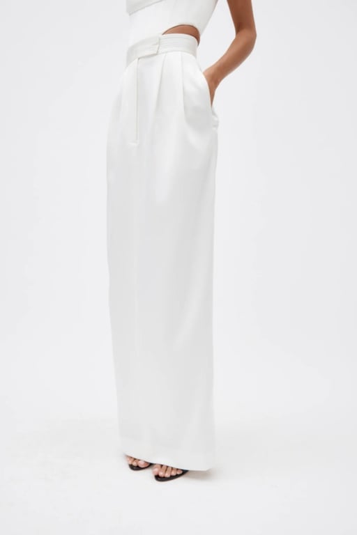 RRP $1800 Size 4 Alex Perry Presley White Skirt Satin crepe pleat column maxi skirt Satin waistband with pocket detail Straight flattering fit with pockets