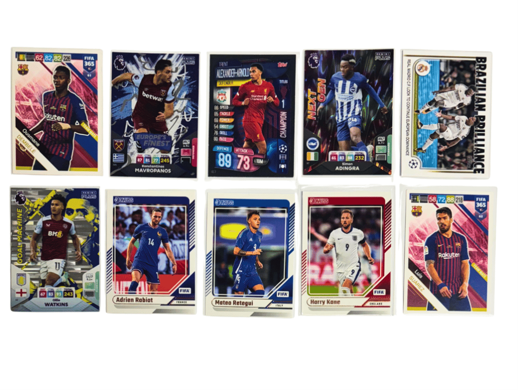 SOCCER CARD LOT – WATKINS, KANE, ALEXANDER-ARNOLD, RABIOT Packed With International Football Firepower, This Lot Features Trent Alexander-Arnold, Harry Kane, Adrien Rabiot, And Ollie Watkins. Includes “Europe’S Finest” Mavropanos And “Goal Machine” Watkins Inserts. Great For Those Collecting Current International Greats. - Mixed Lot With Players From England, France, Italy, And More - Highlight Cards Include: Trent (Topps), Watkins (Goal Machine), And Rabiot (Panini) - “Brazilian Brilliance” Real Madrid Double Card Included - High-Impact Visuals And Limited-Run Designs 584901+26