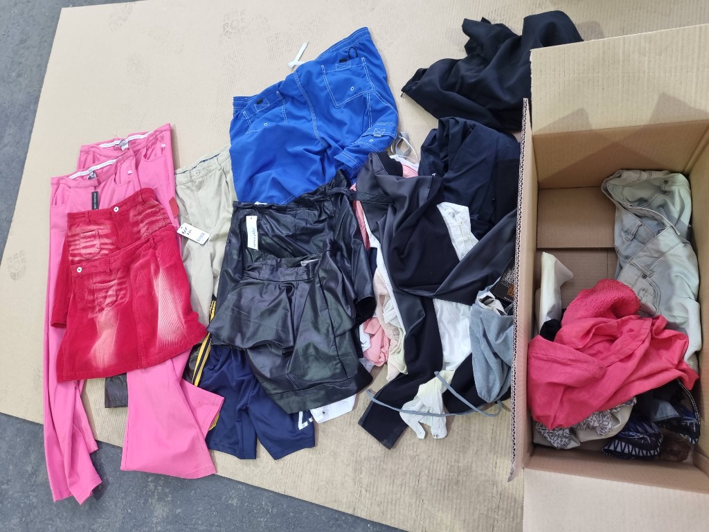Clothing, Random assortment of men's and women's clothing such as shirts, shorts, jackets pants, tees etc mixture of 30 random items