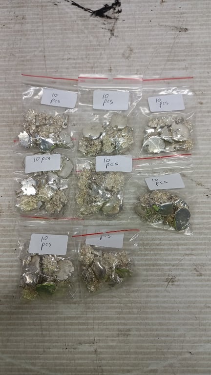 Costume Jewellery, silver and gold style nugget pendants8x bags of silver style pendant 5x bags of gold style pendant Sold as lot