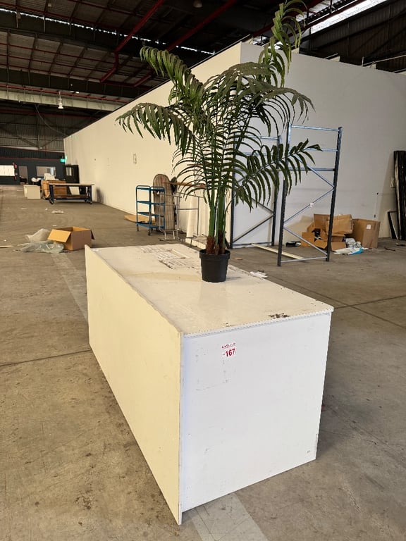 Large white desk and fake plant APPROX DIMENTIONS H 95cm W 220cm D 95cm SOLD AS LOT Location: Upper Coomera, QLD For more information contact: Gage Mackay | Ph: 0458 732 549 email: [email protected] ** Important Notice to Buyers ** Customers MUST sign in on site for inspections and collections Site safety gear is mandatory for all visitors: this includes a high-visibility top, and steel cap boots. The buyer is fully responsible for the dismantling and decommissioning of any electrical, plumbing and gas components. This work must be carried out by a qualified tradesperson. Buyers must provide their own tools, labor, lifting equipment, and transport to ensure the safe removal of the asset. If required, the buyer must organize a crane or Franna at their own expense. All contractors must carry current insurance and comply with Occupational Health and Safety (OHS) regulations. After asset removal, the site must be left clean and tidy. Inspection is highly recommended prior to purchase and removal.