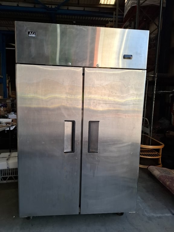 AG equipment Upright fridge Make: AGModel: B900TNVSerial: B900TBVOO32105160GG50001Dimensions: 194cm( H) x 120cm ( W) x 72cm ( D)Description/ extras: Refrigerated, 2 doors , Solid door, , Castors wheels 1 Phase, 10 Amp, stainless steelNOTE: SCRATCHES AND DENTS, CLEANING REQUIRED, NO KEYS