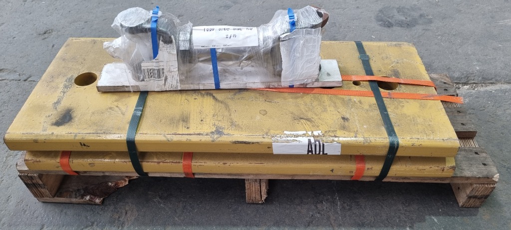 Machinery Components, 2x yellow steel blocks and Driveshaft Component.