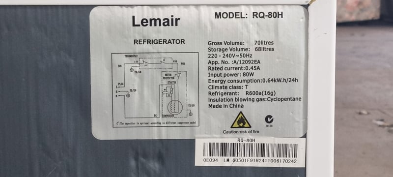 Bar Fridge, Lemair Refrigerator, Model: RQ-80H