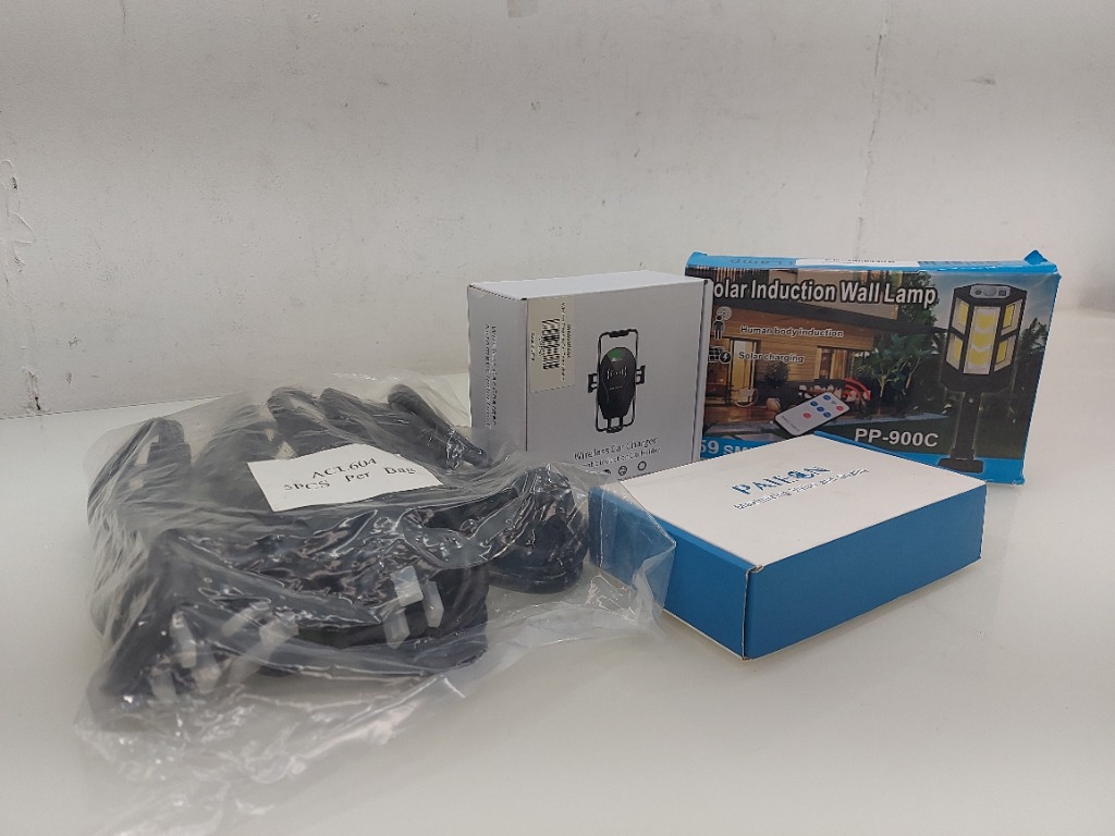 Assorted Lot Includes Wireless Car Charger, Solar Induction Wall Lamp, ACL604, And More, Quantity 4Sold As Lot