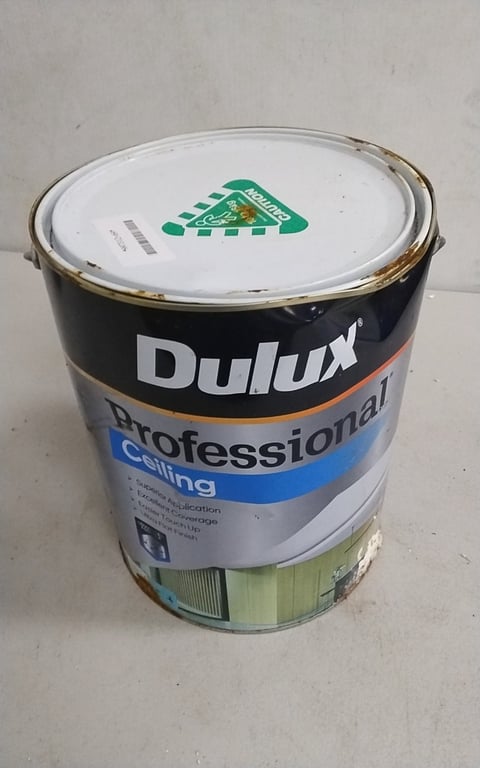 Paint, Dulux Professionals Ceiling PaintColour, Flat White10 litre tinNote dented tinBID PER LITRE MUST TAKE 10 LITRE TIN,