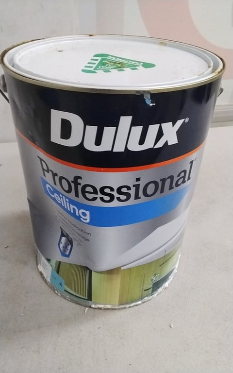 Paint, Dulux Professionals Ceiling PaintColour, Flat White10 litre tinNote Dented tinBID PER LITRE MUST TAKE 10 LITRE TIN,