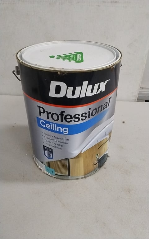 Paint, Dulux Professionals Ceiling PaintColour, Flat White10 litre tinNote dented tinBID PER LITRE MUST TAKE 10 LITRE TIN,