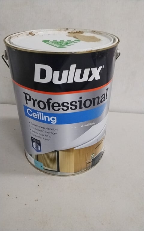 Paint, Dulux Professionals Ceiling PaintColour, Flat White10 litre tinNote dented tinBID PER LITRE MUST TAKE 10 LITRE TIN,