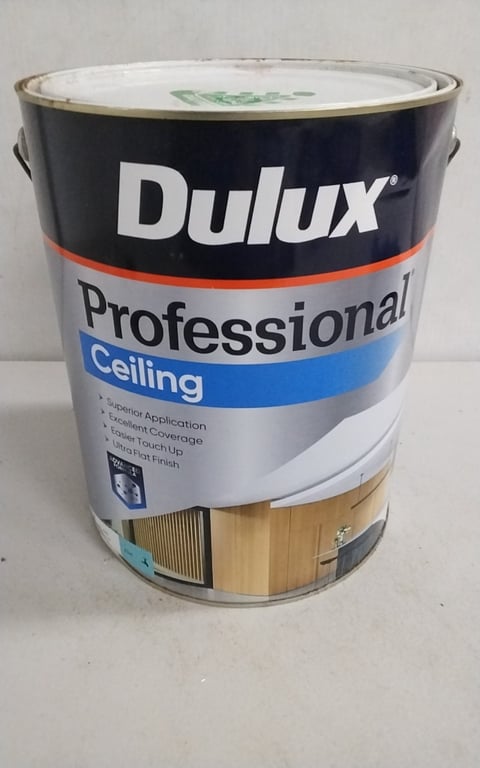 Paint, Dulux Professionals Ceiling PaintColour, Flat White10 litre tinNote dented tinBID PER LITRE MUST TAKE 10 LITRE TIN,