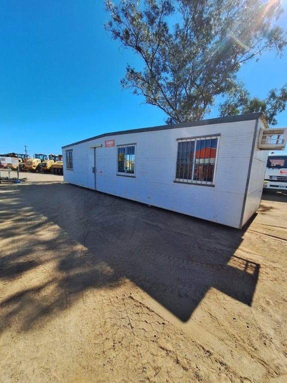 Portable Building 12m x 3m Single Door, 4 x Security Barred Sliding Windows. No A/C, Building Used, Second hand, Steel Frame, Fair/Good Condition refer Photos, Structurally Good, Transportable. Ref 110312, Note: No lifting Onsite, Recommended Transport Super Tilt. Location: Roma, Qld Contact; Mark David - 0437 318 344