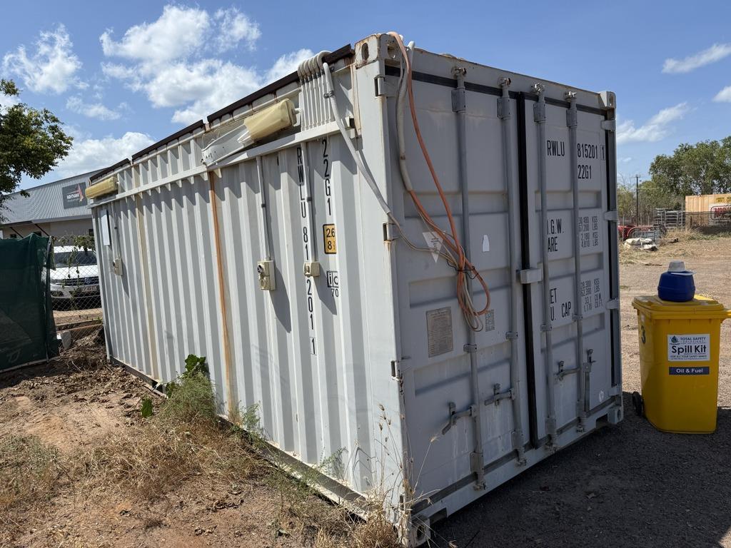 20-Foot Shipping Container Year: 2012 Make: Royal Wolf Model: CX012052 Serial Number: CXIC1819 Description/Extras: Shelving, Power outlets, Exterior light- broken, Work Bench, Racking, As is, Where is. Buyer Must pick up within 7 days of purchase. Contact Nektarios Samiotis on 0477 237 839 or [email protected] Note: Please see photos for extras/ damages & inspections always recommended. Buyer is responsible for the removal of asset. LOCATION: East Arm, NT