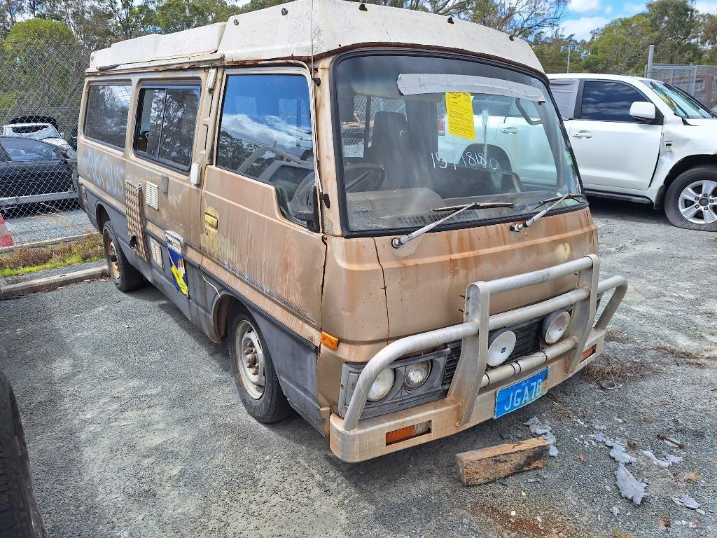 1984 Nissan UrvanYear:1984Make: NissanModel: UrvanBody: WagonChassis: VHE23603359Odometer Indicating: 296,233KmEngine: 4-Cylinder Engine No: Z20472848Transmission: Column Shift Colour: GoldDescription: Missing Front Drivers WheelAll vehicles in this sale are sold with no keys (unless stated otherwise), as is, where is, with no warranty. Any contents as shown in photos may remain with the asset. No mechanical checks or assumptions have been made, therefore we recommend careful consideration prior to bidding.Online Viewing Only, PAYMENT IS DUE 24 HOURS AFTER THE AUCTION CLOSESCollections to occur over 3 days on Wed 5th to Fri 7th of November between 7am to 3.30pm.This Vehicle is unwarrantedPotential of unknown dangerous items (e.g., broken glass, syringes, etc).Persons who enter the vehicle do so at their own risk due to potential presence of unknown items.For all Enquiries, Please Contact Jamie directly on 0486 045 295 or alternatively [email protected]