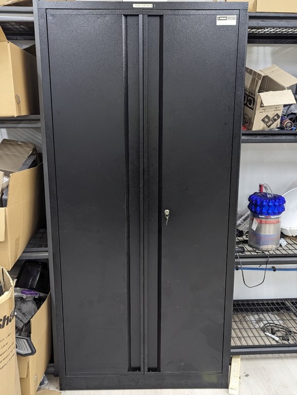 Tall Black Storage Cabinet, 4 Shelf DIMS APPROX : 120 X 65 X 65 CM Note: Comes With 2x Keys