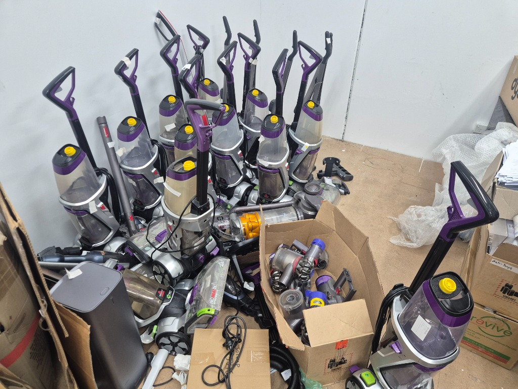 - Bissell Pro Heat Revolution Vaccums- Dyson Vaccum Parts- Dyson Vaccums- Assorted Cleaning Robot Docks/ Charging StationsDyson Bladeless FanNote: All Items are Untested and or missing parts inspection advisedSOLD AS LOT MUST TAKE ALL