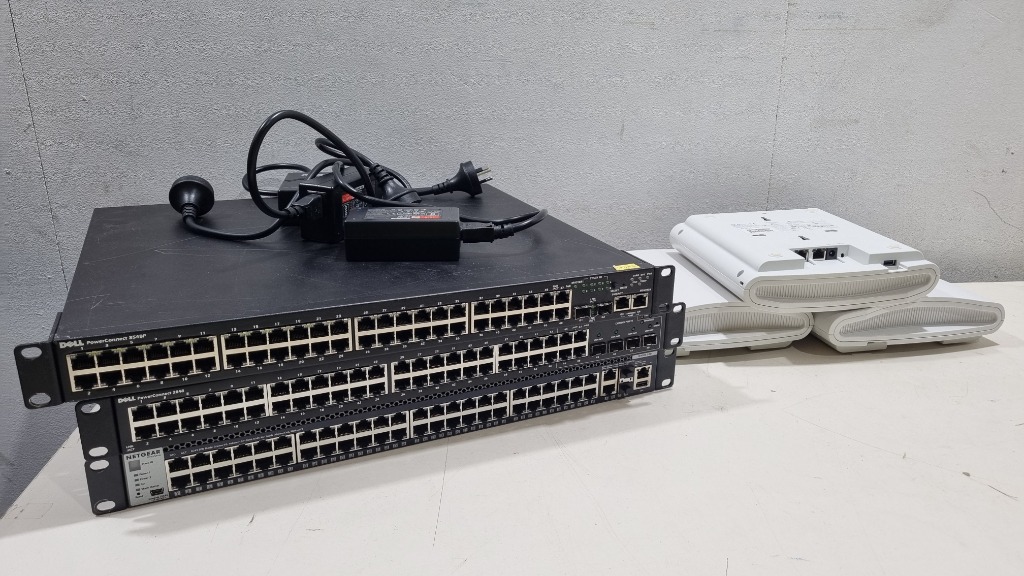 Assorted Tech, Includes R710 Access Point, Netgear and Dell network switchesSold As Lot