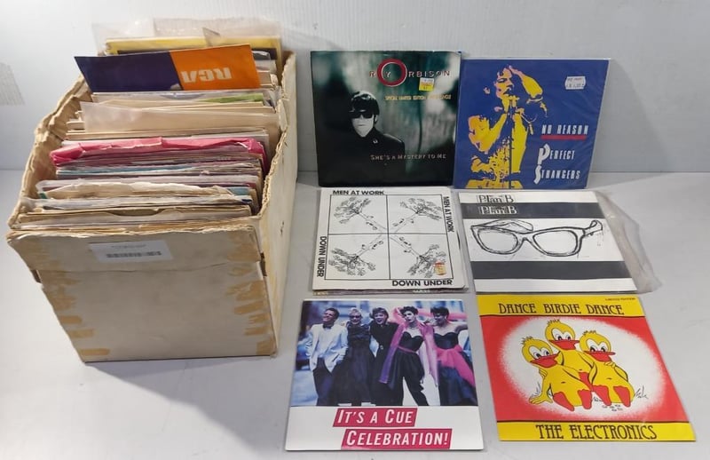 Vinyls, assortment of vinyls Including, Men at Work, The Electronics, Roy Orbison and more Sold as lot