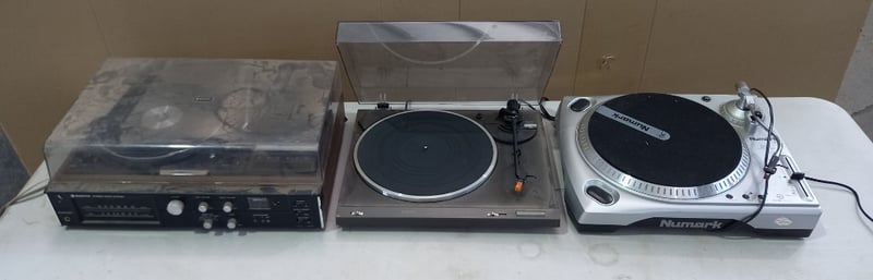 Record Players, 3x Record Platers Including Sanyo (GXT4515XK), Numark Turn Table, and Technics (SL-B210) Conditions unknown, inspection recommended Sold as lot