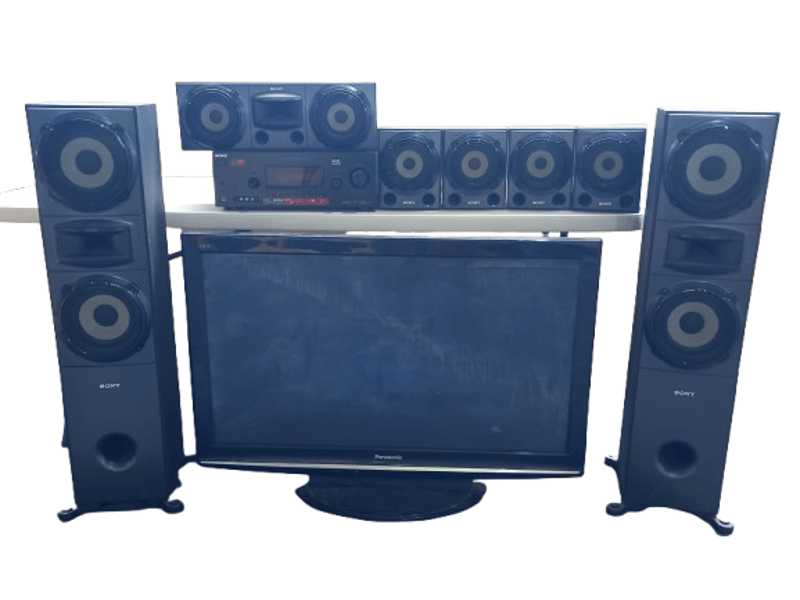 Home entertainment, Including Panasonic TV (TH-P42S10A) & Sony Speakers, with Sony Audio Contorl Center (STR-KM7000) Conditions unknown, wires/cords/remotes not included Sold as lot
