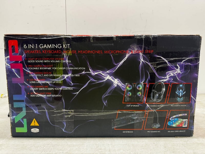 Gaming kit, 3x LVLUP 6 in 1 gaming kit, including speakers, keyboard, mouse, headphones, microphone and light strip