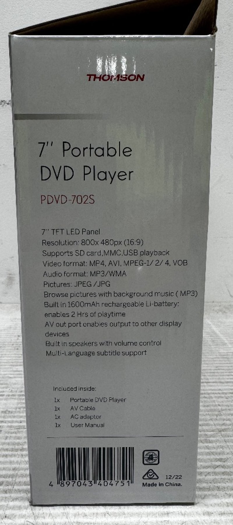 DVD player, 7" portable DVD player, model: PDVD-702S NOTE: condition unknown Bid per each x4