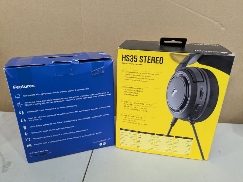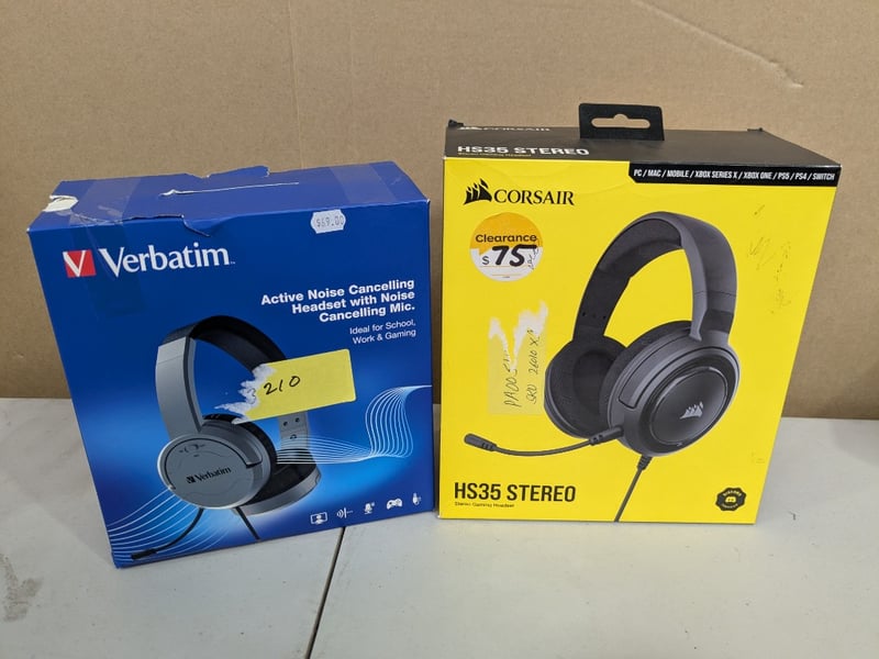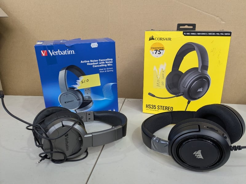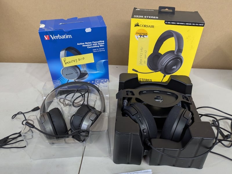 Headphones, 2x Headphones, Verbatmin Noise Cancelling Headphones & Corsair Stereo Gaming HeadSet Sold as lot