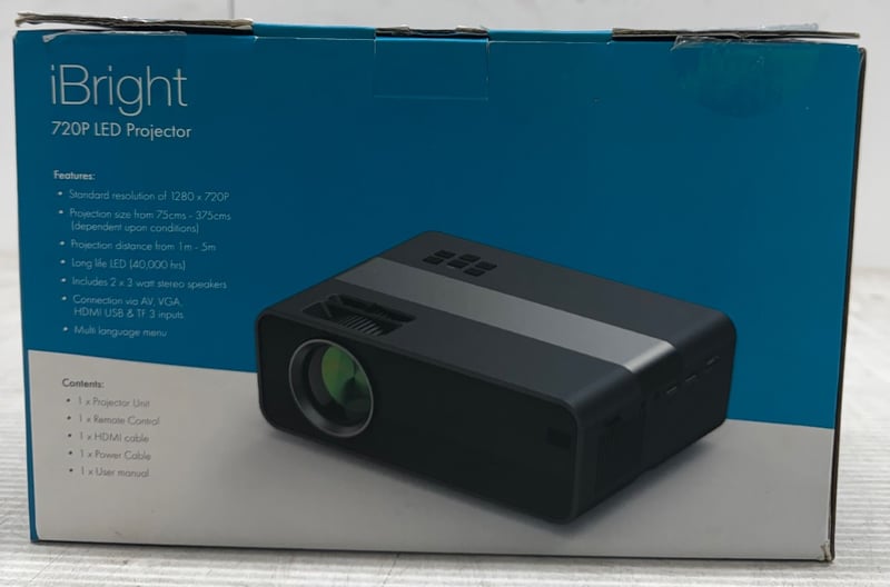 Projector, iBright 720p LED projector NOTE: condition unknown, inspection recommended
