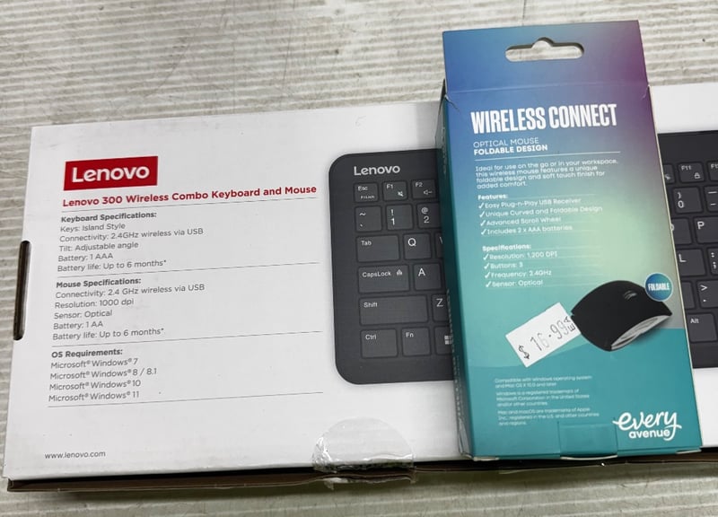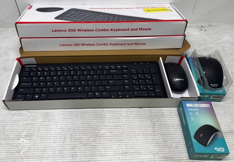 Electronics, 3x Lenovo keyboard and mouse combo and 2x wireless mouse NOTE: condition unknown, inspection recommended Sold as lot