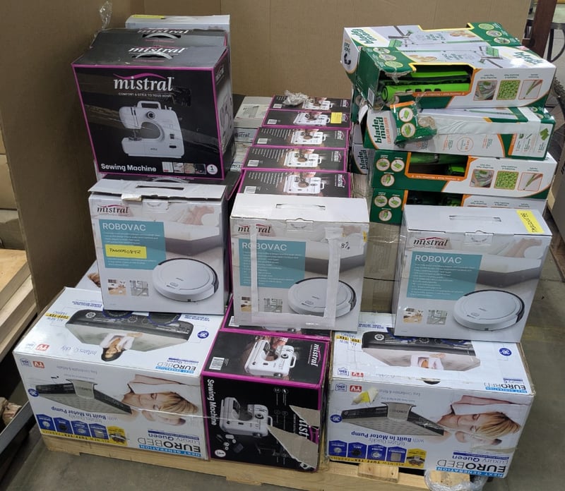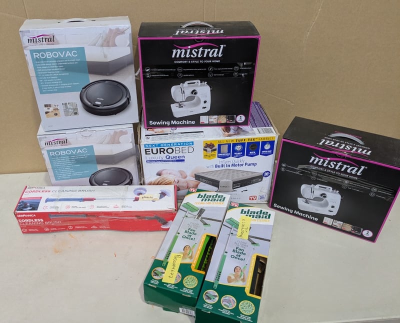 Miscellaneous Items, Assorted Items Including Sewing Machines, Ceiling fan Cleaners, Robovac, Inflatable Bed and more Sold as lot