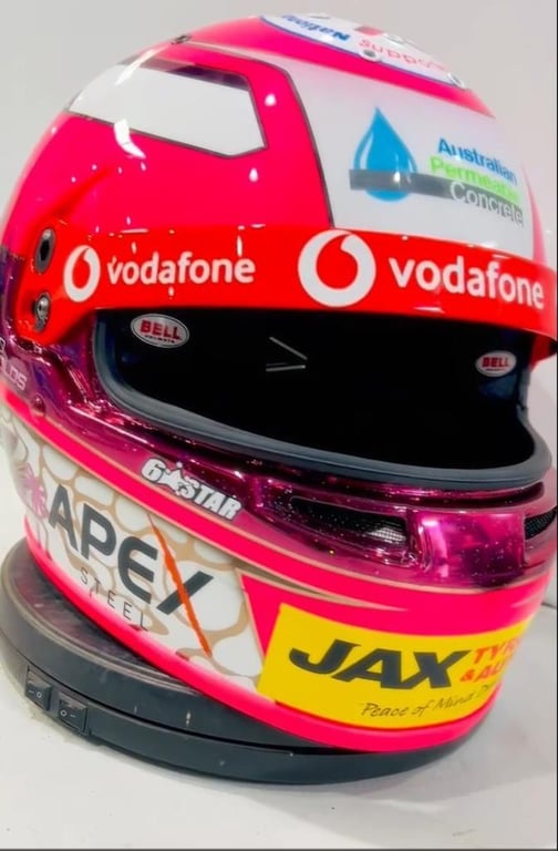 With a unique design featuring a classic Gold Coast scene with a surfer riding a wave. The helmet carries direct race provenance and an estimated value of over $8,500, offering fans and collectors a rare chance to own a genuine piece of motorsport history while supporting an important cause.